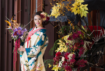 ブライダルで活躍中のヘアメイクスタッフにてヘアメイク&お着付け。