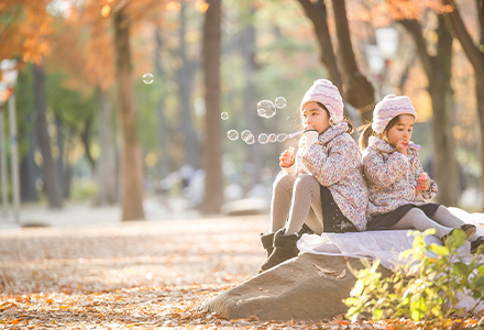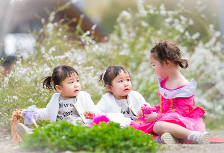 スタジオ内は完全ライティングストロボ撮影でモデル気分。そのまま歩いて行ける公園ロケーション撮影(別途撮影料3000円)で自然いっぱいのお写真とのお子様のコントラストを楽しんでください